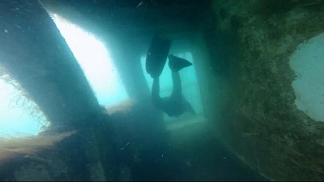 Dalgıç İsa Şahintürk, Maltepe Sahili'nde lodos nedeniyle batan gemiyi su altı kirliliğine dikkat çekmek amacıyla görüntüledi.