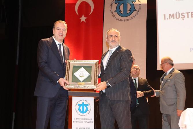 Toplantının sonunda İMEAK DTO Başkanı Tamer Kıran, Ulaştırma ve Altyapı Bakanlığı Denizcilik Genel Müdürü Ünal Baylan, Tersaneler ve Kıyı Yapıları Genel Müdürü Salih Tan ve Kıyı Emniyeti Genel Müdürü Durmuş Ünüvar'a plaket verdi.