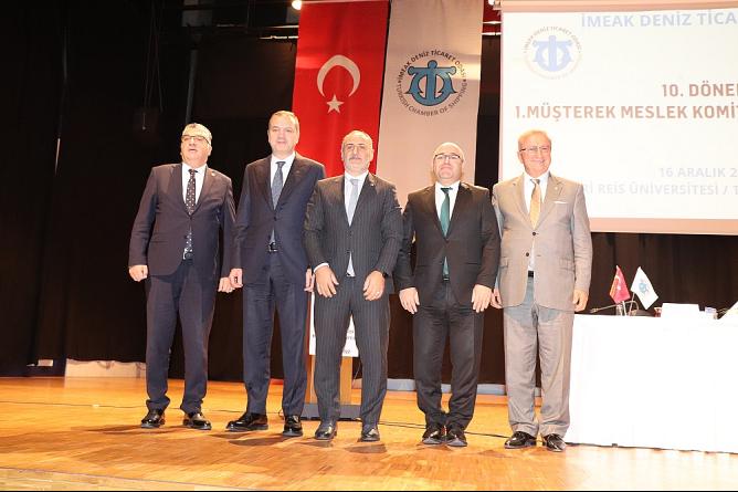 İMEAK Deniz Ticaret Odası (DTO) 10. Dönem 1. Müşterek Meslek Komiteleri Toplantısı, gerçekleştirildi. Piri Reis Üniversitesi Rıdvan Kartal Konferans Salonu’nda yapılan toplantıya, Ulaştırma ve Altyapı Bakanlığı Denizcilik Genel Müdürü Ünal Baylan, Tersaneler ve Kıyı Yapıları Genel Müdürü Salih Tan, Kıyı Emniyeti Genel Müdürü Durmuş Ünüvar, İMEAK DTO Başkanı Tamer Kıran, Gemi İnşa Sanayicileri Birliği (GİSBİR) Başkanı Murat Kıran, Gemi Yat ve Hizmetleri İhracatçıları Birliği’nin (GYHİB) Başkanı Cem Seven, Türk Armatörler Birliği Başkanı Cihan Ergenç, Deniz Temiz Derneği / TURMEPA Başkanı Şadan Kaptanoğlu, İMEAK DTO Meclis Başkanı Başaran Bayrak, yönetim kurulu üyeleri, meslek komite ve şube başkanları ile çok sayıda kişi katıldı.