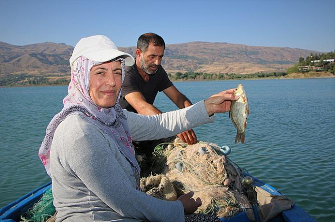 Sabahın erken saatlerinde kalkıp ağların başına gittiklerini aktaran Celalettin Öden ise "Ağlarımızda balık varsa göl kenarındaki restoranlara veriyoruz. Balıkları sattıktan sonra akşam tekrardan göle gidip ağlarımızı seriyoruz. Eskiden bizim yanımızda çalışan elemanlarımız vardı. Elemanlarımız ya paralarını az buluyordu ya da başka işler de bulduktan sonra bizim yanımızdan ayrıldı. Eleman olmaması nedeniyle ben de mecburen eşimle bu işi yapmaya başladım. Ben 30 senedir bu mesleği yapıyorum. Eşimle de yaklaşık 15 yıldır bu işi yapıyoruz. Yazın 3 ay güzel oluyor ama diğer mevsimler de çok kolay olmuyor. Buranın kışları çok şiddetli bu nedenle bazen 10 gün balığa çıkmadığımız zamanlar oluyor. Bu sürede ağlarımızın eksikliklerini tamamlıyoruz. Daha sonra tekrardan suya dönüyoruz" diye konuştu.