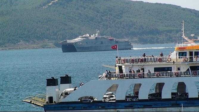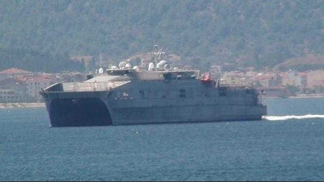Marmara Denizi'nden Çanakkale Boğazı'na giriş yapan ABD Donanması'na ait 103 metre uzunluğundaki transfer gemisi 'USNS Yuma',Çanakkale'den geçiş yaptı. ABD savaş gemisine, 1 Türk Sahil Güvenlik botu eşlik etti 36 millik Çanakkale boğaz geçişi sonrası savaş gemisi Ege Denizine çıkış yaptı.