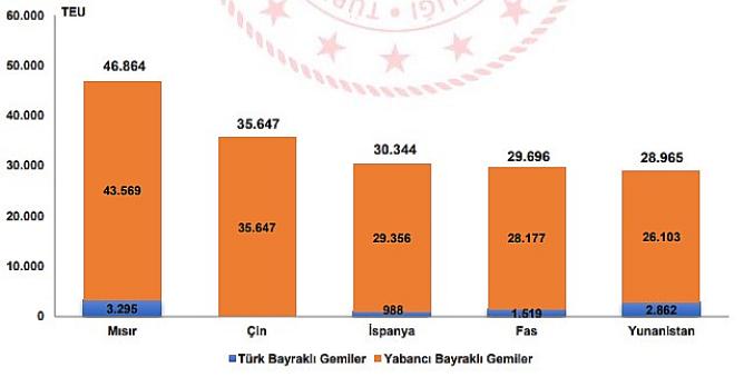 En fazla konteyner yüklemesini Mısır’a giden konteynerler oluşturdu