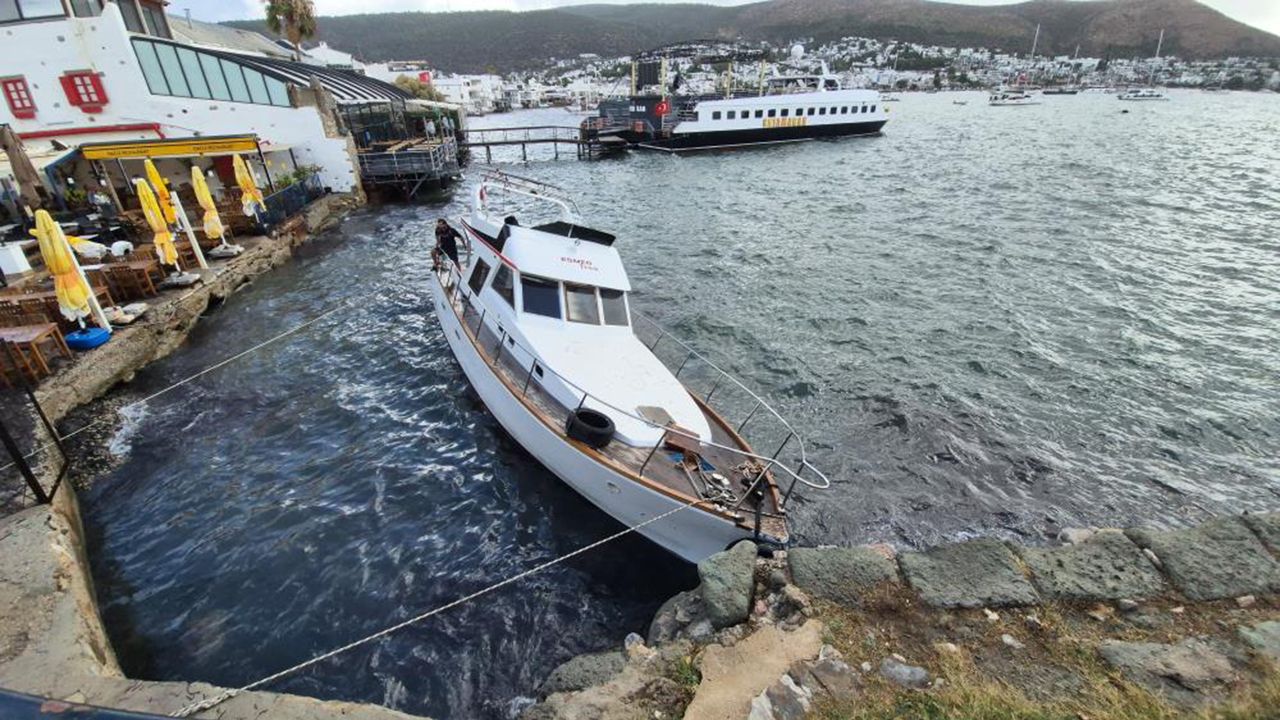 Muğla'nın Bodrum ilçesinde aralıklarla yağışla birlikte güneyli yönlerden rüzgar da etkili oldu. Kumbahçe Koyu'nda demirli 12 metre boyundaki tekne, halatının kopması sonucu bağlı bulunduğu tonozdan ayrıldı.