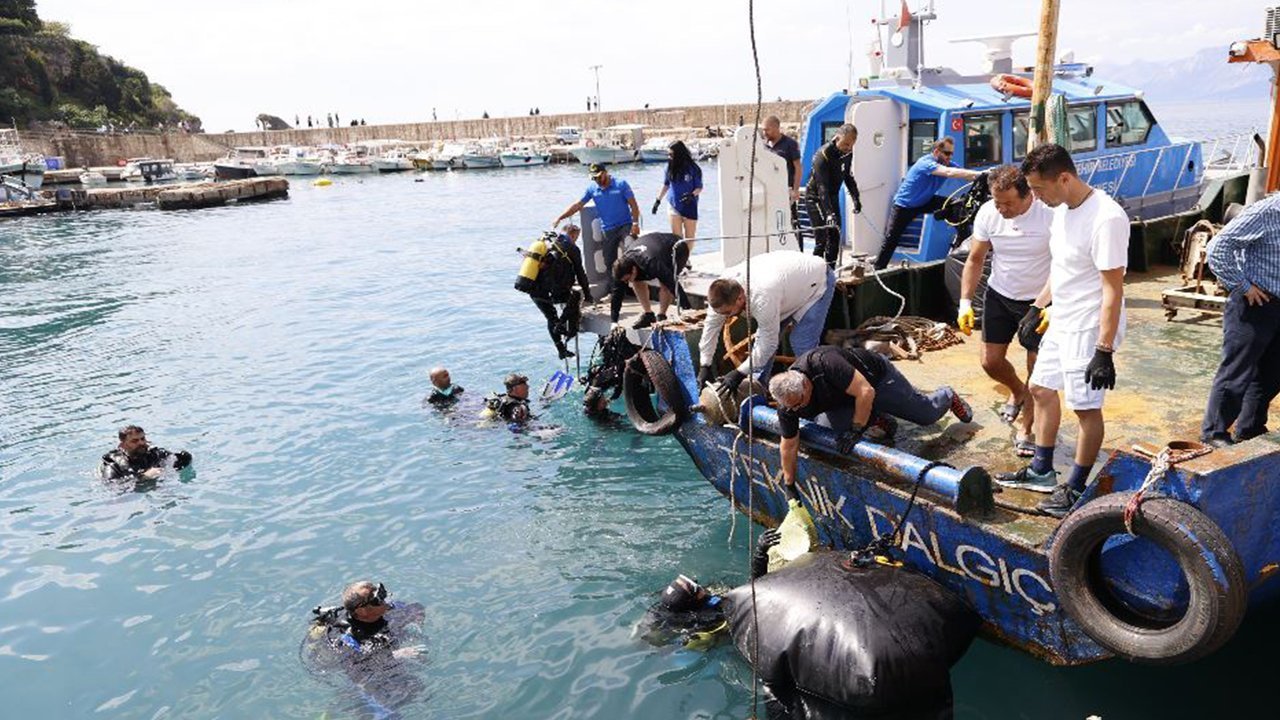 Kaleiçi Yat Limanı'nda gerçekleştirilen dalış etkinliğinde 30 dalgıç bir saat deniz dip temizliği yaptı. Bir saatlik dalışta, dalgıçların denizin dibinden çıkarttığı çöpler görenleri şaşkına çevirdi. Yat Limanı'nda yapılan temizlikte araç lastiğinden, demire, teneke şişelere kadar birçok atık çıkartıldı.