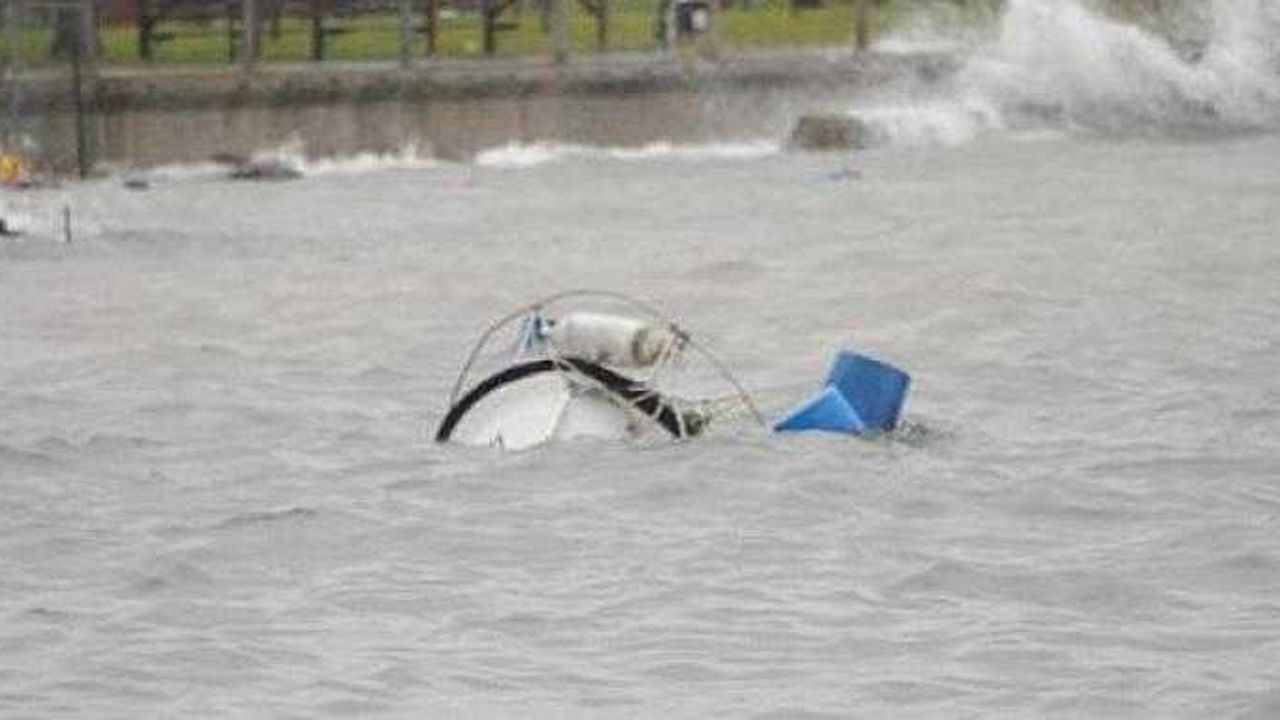 Turizm kenti Antalya’da şiddetli fırtına nedeniyle oluşan dev dalgalar falezlerin boyuna kadar çıktı. Aşırı yağış ve dolu nedeniyle hava akşam karanlığına dönerken yat limanındaki bir tekne battı.