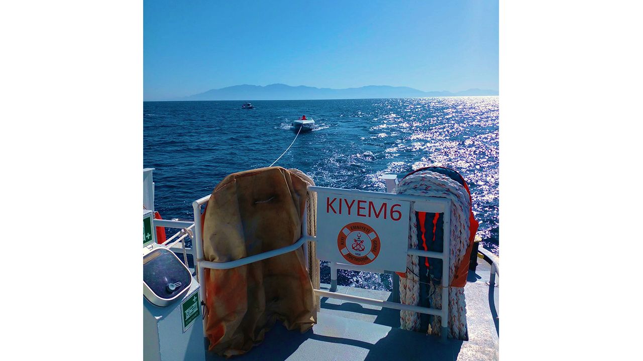 Kıyı Emniyet Genel Müdürlüğü kurtarma botuna yedeklenen 9 metre boyundaki tekne Bodrum Marina’ya emniyetle yanaştırıldı.