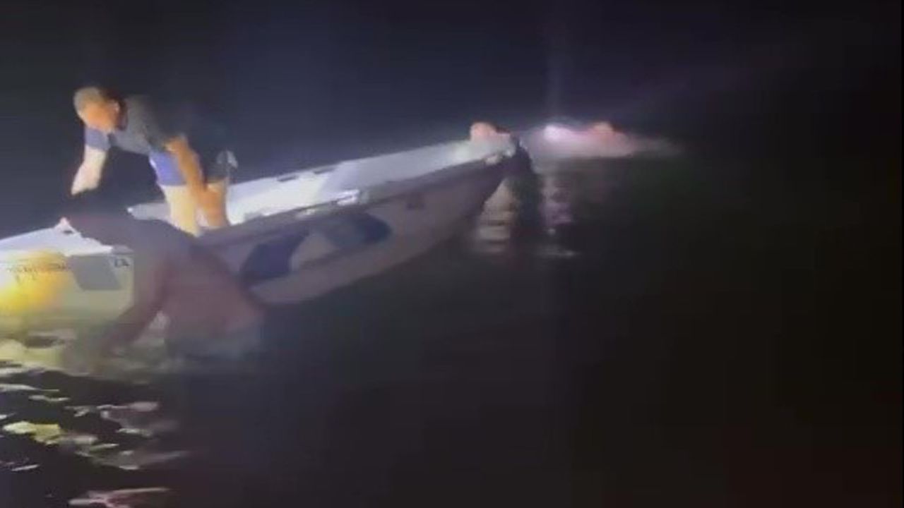Batan teknedeki 3 kişiyi sağ bir şekilde kurtararak kıyıya çıkardı.