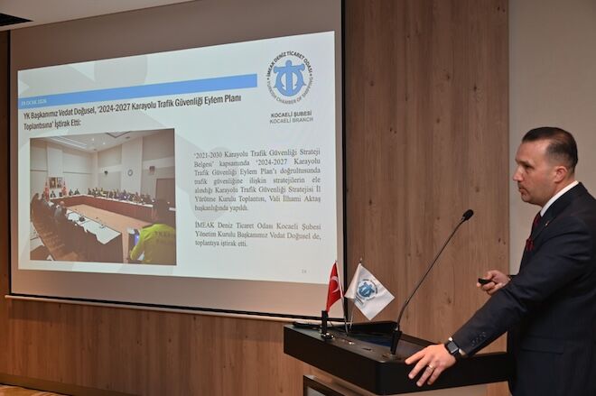 İMEAK Deniz Ticaret Odası Kocaeli Şubesi’nin Şubat ayı 41 Olağan Meclis Toplantısı, MARKA Kocaeli Koordinatörü Kerim Ekrem’in, ‘Yerel Kalkınma Hamlesi Teşvik Programı’, Fatih Taşdelen’in ‘Kocaeli Tur Destinasyonlarının Oluşturulması’ ile Muhammed Bamyacı’nın, ‘İMEAK Deniz Ticaret Odası ile Meslek Yüksekokulları Eğitim İşbirliği’ başlıklı bilgilendirme sunumlarının ardından, üyelerin sektörel görüş ve önerilerini aktarması ile sona erdi.