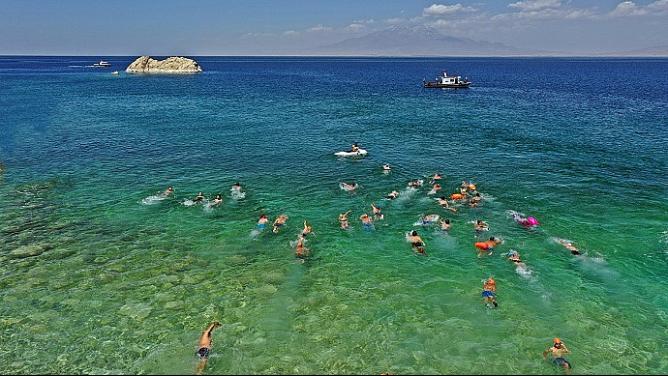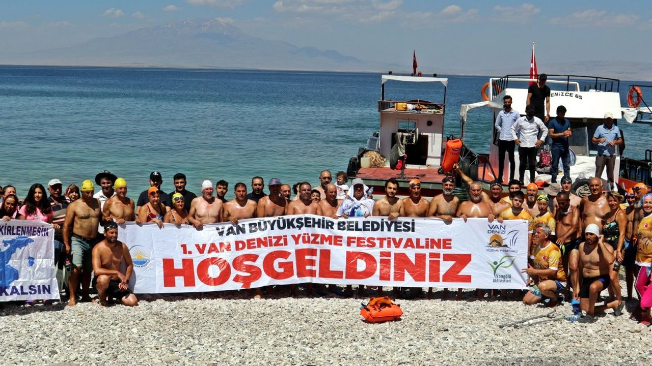 Van Gölü’nü dünyaya tanıtmak, yerli ve yabancı turistlerin Van’a ilgisini artırmak için büyükşehir belediyesi tarafından 16 - 23 Temmuz tarihleri arasında düzenlenen 1. Van Denizi Yüzme Festivali renkli görüntülerle devam ediyor. Festival çerçevesinde Kültür ve Sosyal İşler Dairesi Başkanlığı koordinasyonunda Van Gölü Aktivistleri işbirliğiyle Tuşba Amik sahillerinden Bitlis’in Adilcevaz koylarına bayrak teslimli yüzme etkinliği düzenlendi. Sabah saatlerinde Ulaşım Daire Başkanlığına ait otobüslerle Amik sahiline gelen yaklaşık 50 profesyonel yüzücü, gerekli hazırlıklarının ardından çekilen hatıra fotoğrafı ile Bitlis’in Adilcevaz ilçesine doğru kulaç attı. Yaklaşık 11 kilometre uzaklıktaki Adilcevaz koylarına doğru kulaç atan yüzücülere sahil güvenlik ve tekneler eşlik etti. Yaklaşık 6 saat sürecek bayrak teslim yüzme etkinliğinin ardından yüzücüler Adilcevaz’da kurulan kamplarda geceyi geçirecek.