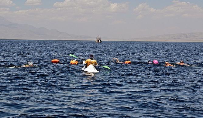 Van Büyükşehir Belediyesince bu yıl ilki düzenlenen Van Denizi Yüzme Festivalinin 7. gününde profesyonel yüzücüler, Van'dan Bitlis’e düzenlenen bayrak teslimli yüzme etkinliği için kulaç attı.