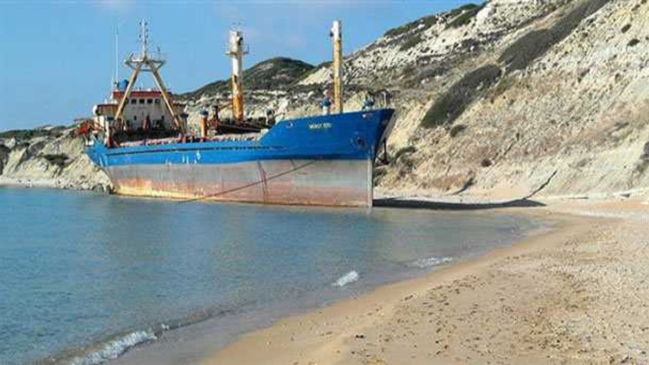 Çanakkaleʹde, hukuki sorunları nedeniyle seferden men edilerek demirletildiği Bozcaada açıklarında fırtına yüzünden adanın en güzel koylarından Beylik Koyu sahiline sürüklenen 88 metre uzunluğundaki ve 2 bin 250 groston ağırlığındaki ˮMercy Godˮ adlı kuru yük gemisi, yaklaşık 2 yıldır kurtarılmayı bekliyor.