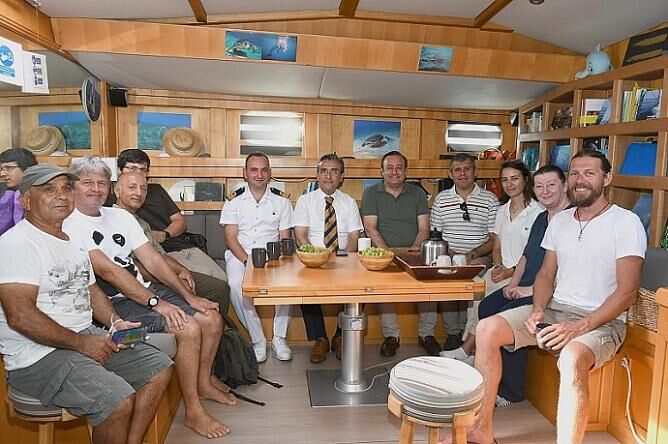 Doğal hazinelere dikkat çekmek ve denizi hayalet ağlardan kurtarmak için Akdeniz’e açılarak 15 Ağustos’ta Kuşadası’na gelen Dünya Doğayı Koruma Vakfı (WWF) Akdeniz Girişimi'nin (MMI) Blue Panda yelkenlisinde bir değerlendirme toplantısı düzenlendi. Kuşadası Setur Marina’ya demirleyen yelkenlide gerçekleşen toplantıda yetkili ekip tarafından Kuşadası’nda yapılan gözlemler ele alındı.