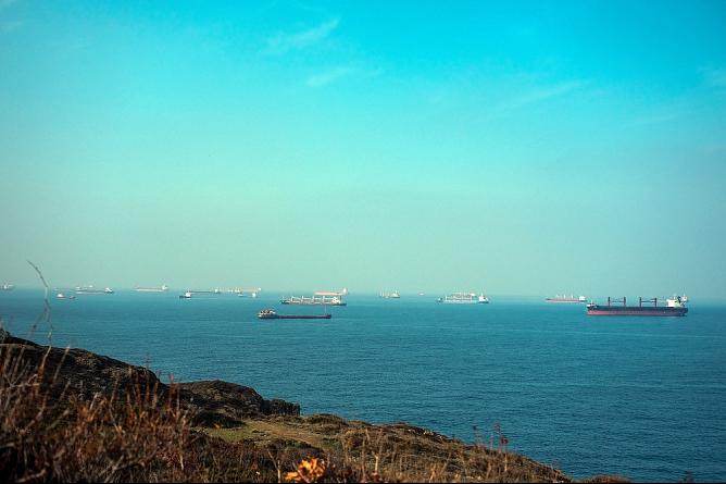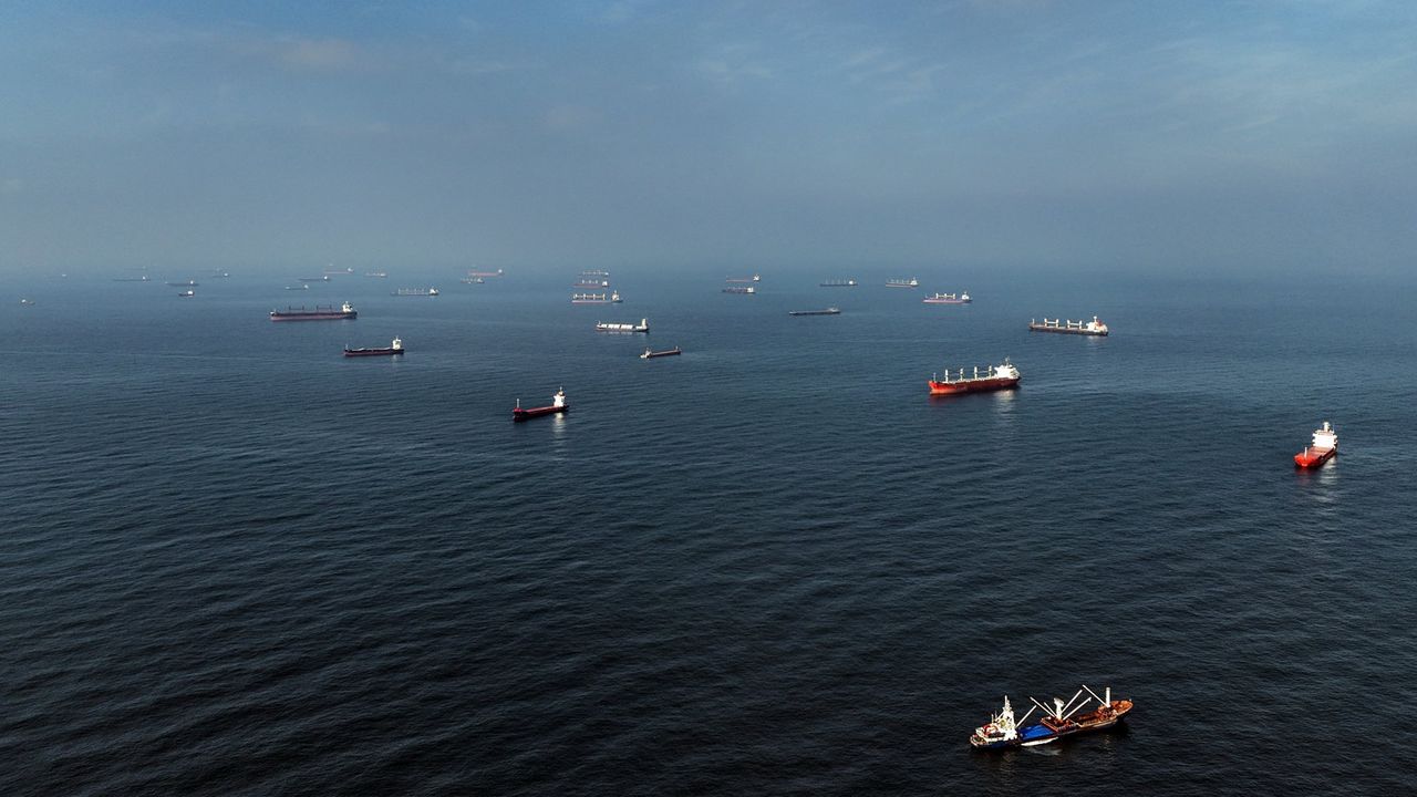 Ukrayna’dan İstanbul’a seyir halinde olan yük gemisinin Beykoz Anadolu Kavağı önlerinde karaya oturmasının ardından Boğaz gemi trafiğine kapatılmıştı. Bu nedenle Boğaz girişinde oluşan gemi trafiği drone ile görüntülendi.