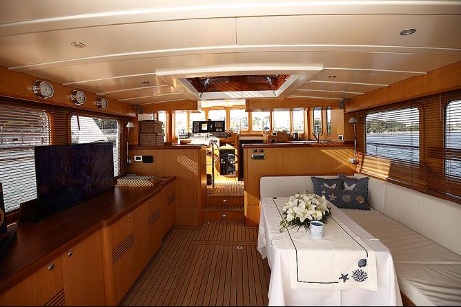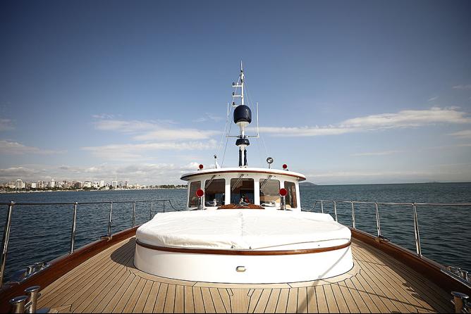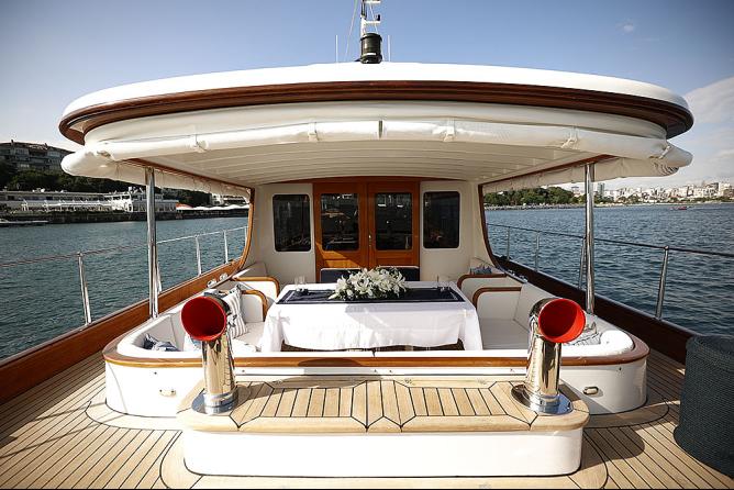 HATIRA ile geçirdiğim o günü anlatmadan evvel gözlerinizde canlansın diye güzel kızımızdan azıcık bahsetmek istiyorum: Bir kere o 1930’ların Klasik Gentleman's “Commuter Klas” yat gezi teknesinden esinlenilip günümüze uyarlanan bir modelin nadide örneklerinden biri. Kendisi tek kelimeyle bir afeti devran… En üst kalite lamine maun ahşap gövdesi, 18 metre boy, 5 metre eniyle sahip olduğu 14-15 knot’luk seyir hızıyla denizi sarıp sarmalıyor…