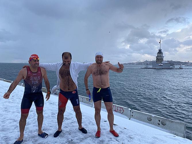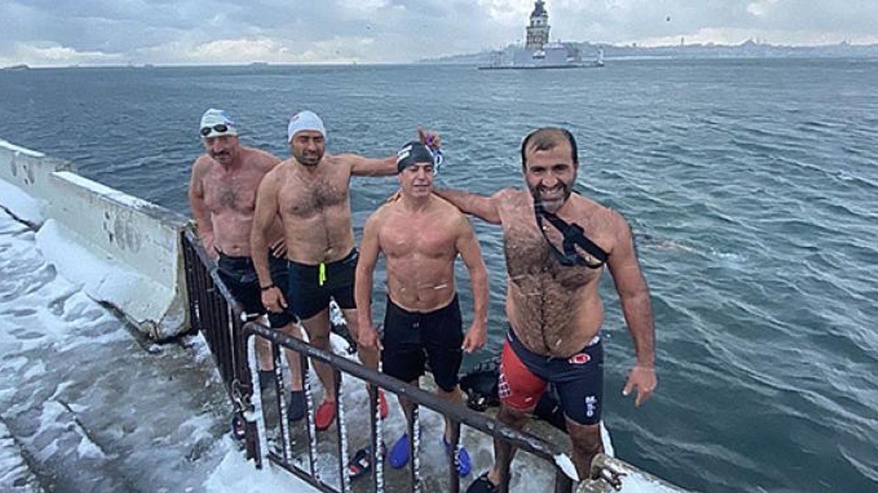 Buz gibi havada denize giren Ramazan Değer, “Yine her zaman olduğu gibi Kız Kulesi'nde yüzmeye geldik. Sarayburnu Fatihleri olarak 365 gün denize giriyoruz. Alışkanlığı olmayan insanlara tavsiye etmiyoruz. Bu güne kadar, soğuk havada denize girdiğimiz için hiçbir zaman hastaneye gitmedik. Spor sağlıktır, deniz şifadır” diye konuştu.
