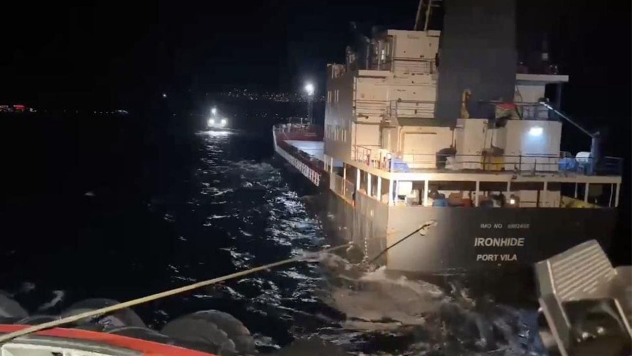 Bulgaristan'dan İsrail'e giden 78 metre boyundaki 'IRONHIDE' isimli kuru yük gemisi Çanakkale Boğazı'ndan geçişi sırasında Karanfil Burnu açıklarında makine arızası yaptı.
