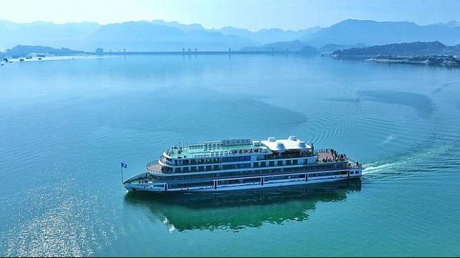 Çin’in kendi gücüne dayanarak geliştirdiği elektrikli yolcu gemisi “Yangtze Nehri-Üç Boğaz Barajı 1” dün Yangtze Nehri-Üç Boğaz Barajı bölgesinde ilk yolculuğuna çıktı.