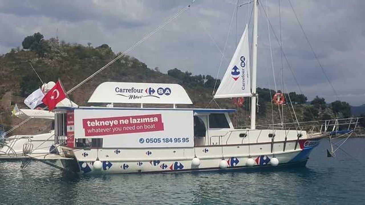 Perakende sektörünün önemli markalarından biri olan CarrefourSA, Muğlaʹnın Fethiye ilçesinde deniz üzerinde “Teknede Ne Lazımsa” sloganı ile hizmet veriyor. Göcek’te Nisan ayında hizmete başlayan 16 metre uzunluğundaki ve 50 metrekare alışveriş alanı olan CarrefourSA Mavi, sabah 8.00 ile 22.00 arasında her gün belirli bir rota üzerinde ilerleyerek, teknelere anında satış yaparken, iletişimler ile de alınan siparişler teslim ediyor. CarrefourSA Mavi, Göcek koylarında konaklayan gulte,sailing, charter, teknelerine ve kara ulaşımı olmayan restoranlara da market alışverişlerini ayaklarına götürüyor.