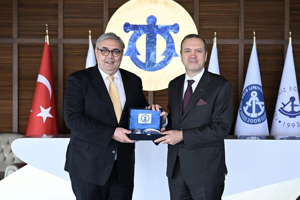 Deniz Turizmi Birliği Derneği Yönetim Kurulu Başkanı Artun Ertem, ev sahipliği ve sektöre olan destekleri için İMEAK Deniz Ticaret Odası Başkanı Tamer Kıran’a teşekkür ederek kendisine sembolik bir hediye takdim etti.