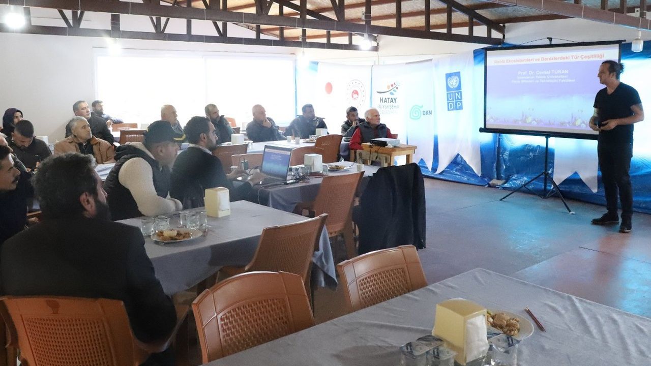 Hatay Büyükşehir Belediyesi tarafından iklim eylemi projesi çerçevesinde UNDP ile birlikte Samandağ ilçesinde balıkçılara yönelik eğitim verildi. Proje çerçevesinde denizden atık toplayanlara balıkçılık malzemesi dağıtılacak.