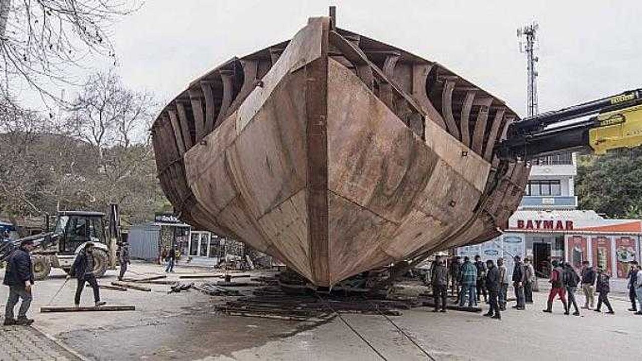 Kurşunlu Mahallesinde Gökmen Civelek’e ait atölyede yapılan dev balıkçı teknesi, tıpkı İstanbul’un Fethi’ndeki gibi karadan yürütülerek liman sahasına getirildi. 40 kişilik bir ekibin yanı sıra 1 vinç, 3 kepçe ile 3 traktörün 10 saatlik bir çalışmasıyla limana çekilen 200 tonluk dev tekneyi yolun ortasında gören vatandaşlar ise şaşkınlıklarını gizleyemedi.