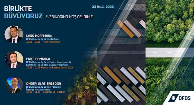 DFDS Akdeniz İş Birimi, DFDS Akdeniz İş Birimi “Birlikte Büyüyoruz” başlıklı dijital panelde müşterileri ile bir araya gelerek DFDS Fransa İspanya rotasının müşterilerine sunduğu hizmet detaylarını ve 2023 yılı hedeflerini duyurdu. Panelin açılış konuşmasında DFDS’in “Sürdürülebilirlik” hedeflerini aktaran DFDS Akdeniz İş Birimi Başkanı Lars Hoffmann’ın yanı sıra DFDS Akdeniz İş Birimi Satış, Pazarlama, İş Geliştirme ve Strateji Başkan Yardımcısı Fuat Pamukçu da lojistik sektörüyle ilgili öngörülerini paylaştı. Panelde Fransa ve İspanya Rota Direktörü Önder Ulaş Başboğa gerçekleştirdiği sunumda Fransa ve İspanya rotası ile ilgili detayları ve rotanın DFDS operasyon ağına kazandırdıklarını paylaşırken ayrıca demiryolu taşımacılığının da hatta dahil edilmesiyle hizmetlerinde sunulan yeni fırsatları ele aldı.