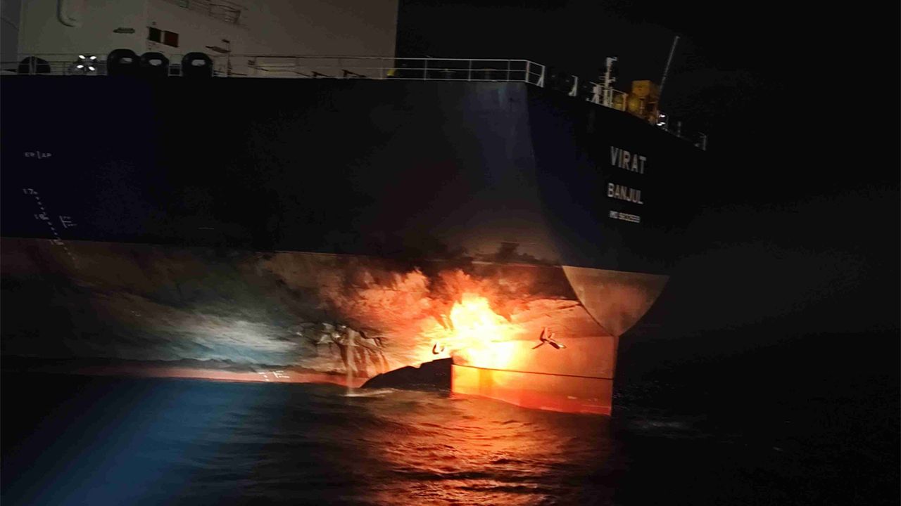 Denizcilik Genel Müdürlüğü'nün (DGM) sosyal medya hesabından yapılan açıklamada, "VIRAT isimli tanker, Karadeniz'de takribi 35 deniz mili açıkta isabet aldığını bildirmiş, olay yerine kurtarma unsurları ve ticari gemi yönlendirilmiştir. Gemideki 20 personelin durumu iyi olup makine dairesinde yoğun duman tespit edilmiştir. Süreç takip edilmektedir" denildi.