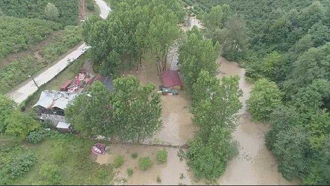 Selin taşıdığı atıklarla dolan ve denizin 2 renge büründüğü Akçakoca sahili ise havadan görüntülendi. Görüntülerde sel suları ile hasar gören turistik tesislere ait masa, sandalye ve benzeri eşyaların sahile biriktiği görünüyor. Yine sel sularının sürüklediği büyük bir ağaç ise sahilden 500 metre açıkta deniz içinde dikili bir şekilde kaldığı havadan çekilen görüntülere yansıdı. Görüntülerin devamında Akçakoca açıklarında Karadeniz’in sularının sel suları ile 2 renge bürünmesi görünüyor.