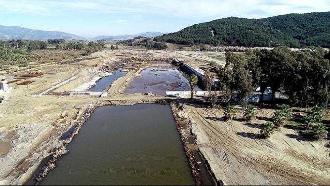Efes’i 2500 yıl sonra yeniden denizle buluşturacak “Efes Antik Kanal Projesi’nin ilk etabı önümüzdeki yıl tamamlanıyor. İnşaatta fore kazık çakma çalışmalarının yaklaşık yüzde 60’ı bitirilirken, mermer kaplama işlemlerinin sürdüğü yat limanı da yavaş yavaş şekillenmeye başladı.