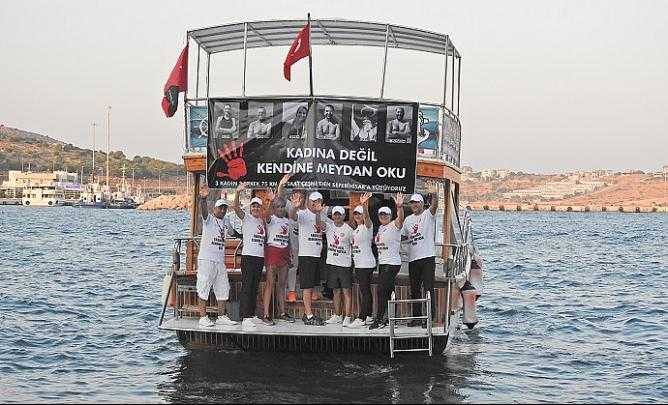 Dün tüm Türkiye’nin yüreğini yakan çığlıklarla Emine Bulut’un katledilmesinin ardından, kadına şiddetin son bulması konusunda farkındalık oluşturmak amacıyla 3 kadın ve 3 erkek açık deniz yüzücüsü, Seferihisar’a kadar sürecek 80 kilometrelik etabın startını Çeşme’den verdiler.