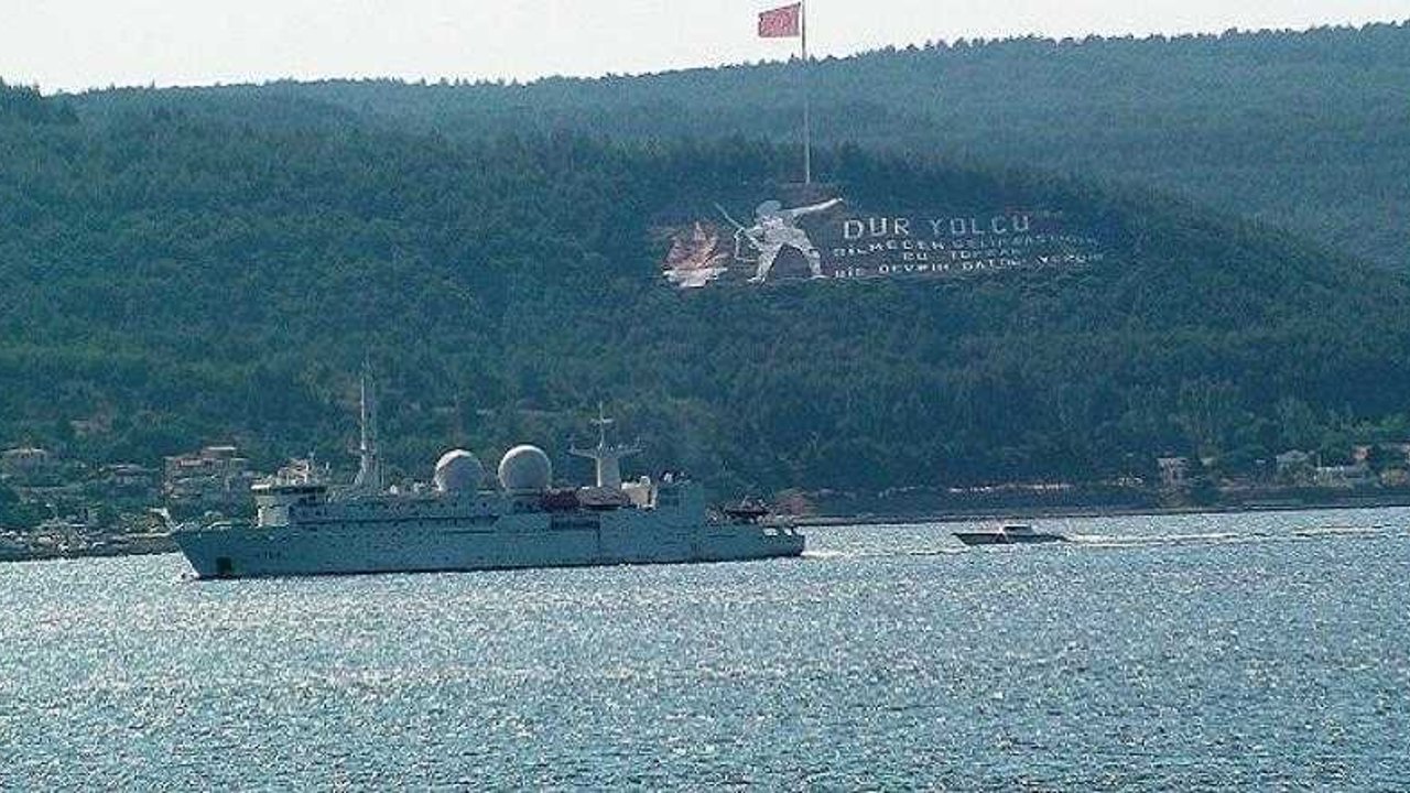Boğaz geçişi sırasında savaş gemisine sahil güvenlik botu refakat etti. İstihbarat gemisi 3 saatlik boğaz geçişi sonrası Ege'ye yol aldı.