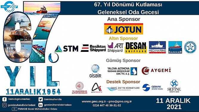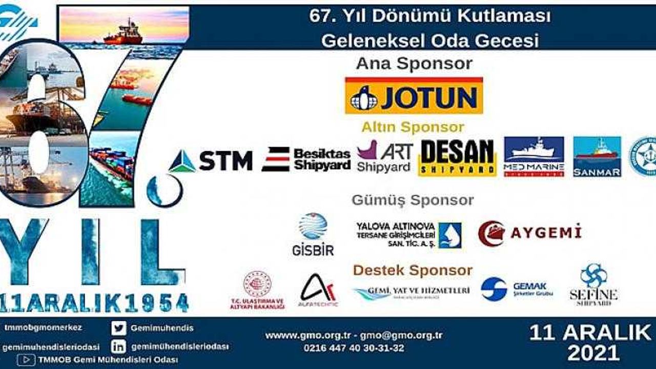 TMMOB Gemi Mühendisleri Odası’nın (GMO) 67. Kuruluş yıl dönümünün kutlanacağı “Oda Gecesinde” Gemi inşa sektörünün tüm paydaşları, Gemi inşa sektörü birlik, dernek ve odalarının temsilcileri, Gemi Mühendisleri Odası üyeleri ve değerli aileleri bir araya gelecek.