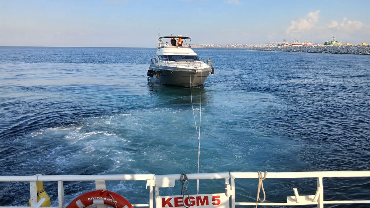 Tekne, KEGM-5 hızlı can kurtarma botuyla yedeklenerek West İstanbul Marina’da emniyete alındı.