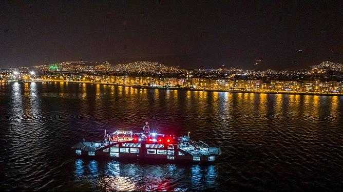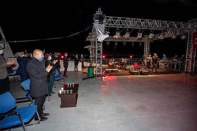 Sosyal mesafe kuralı gereği Levent, konsere orkestrayla değil üç müzisyenle çıktı. Ses ve ışık sistemiyle donatılmış feribot aynı zamanda Körfez’de büyük bir görsel şölen de oluşturdu. Levent’e feribotta İzmir Büyükşehir Belediye Başkanı Tunç Soyer ve eşi Neptün Soyer de eşlik etti.