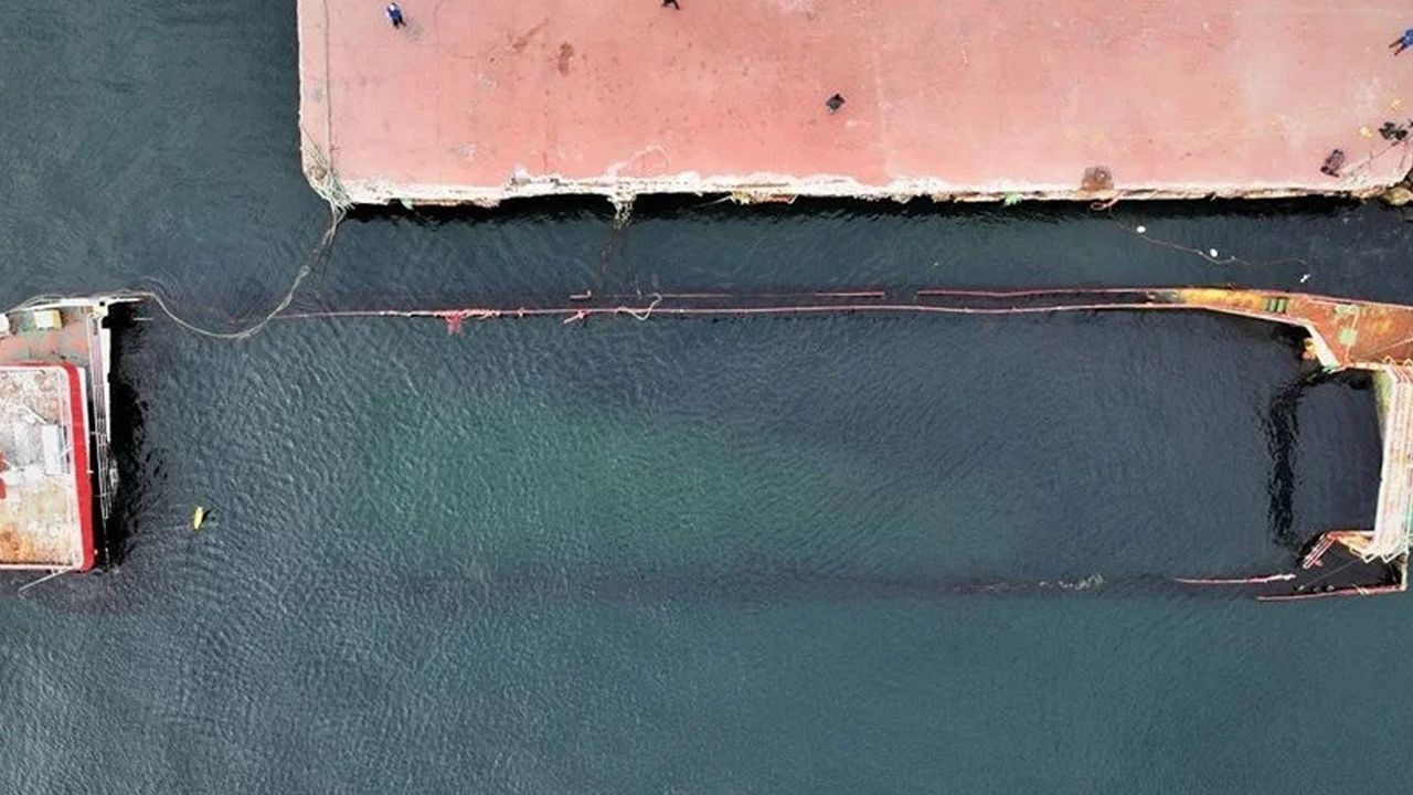İstanbul'da lodos nedeniyle batan ''Erdemler 6'' isimli geminin içerisi görüntülendi. Söküm işlemlerine temmuzda başlanan geminin çevresinde el arabası, lastikler, hayalet ağlar ve birçok katı atık görüldü.