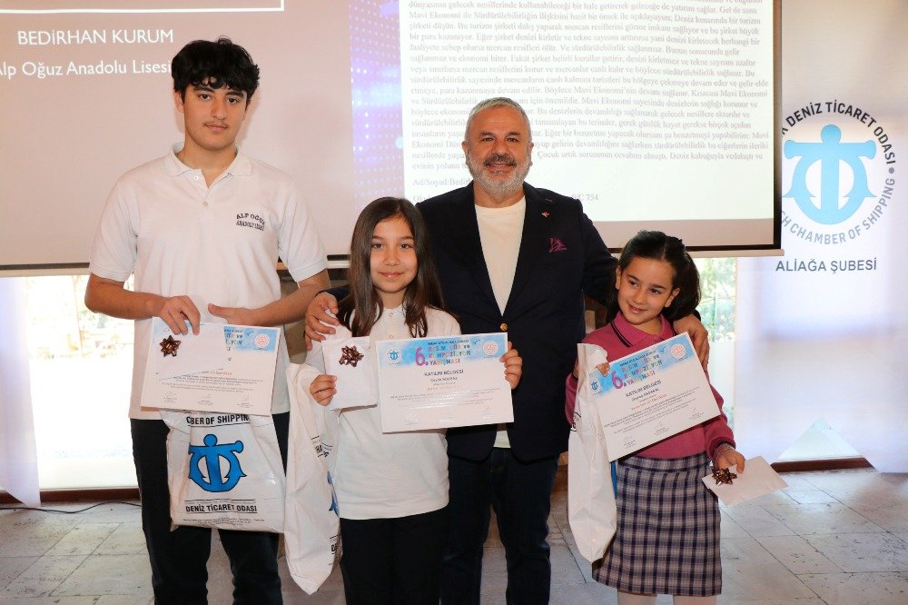 Şiir dalında 3’üncülük ödülü Aliağa 100.Yıl Ortaokulu öğrencisi Serdar Akkuş’a, kompozisyon dalında 3’üncülük ödülü Şehit Oğuz Özgür Çevik Anadolu Lisesi öğrencisi Eylül Sena İnan’a, resim dalında 3’üncülük ödülü ise Fatih İlkokulu öğrencisi Zeynep Asel Küçük’e verildi. Öğrencilere ödülleri Aliağa Cumhuriyet Başsavcısı Serkan Başaran tarafından verildi.