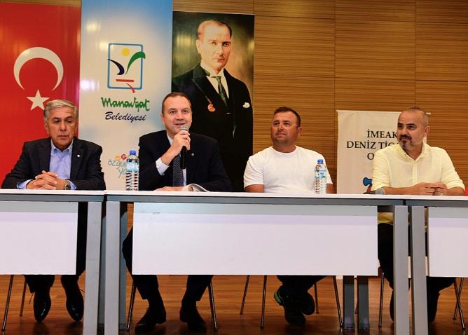 Ardından Manavgat Belediyesi Atatürk Kültür Merkezi’nde Manavgatlı üyelerle bir araya gelen DTO heyeti burada bir toplantı gerçekleştirdi. Toplantıda konuşan İMEAK DTO Başkanı Tamer Kıran, geçtiğimiz 4,5 yılda hem dünyada hem de Türkiye'de çok fazla olay olduğunu belirterek, "Uzun bir döneme sığmasını bekleyeceğiniz olaylar silsilesi hem dünyada hem de ülkemizde yaşandı" dedi. Yönetime geldikleri günden bu yana deniz turizmiyle ilgili toplam 54 konuyu çözüme kavuşturduklarını dile getiren Kıran, sözlerini şöyle sürdürdü; "Deniz turizmi Oda'nın hem bakanlıklar nezdinde hem de yönetimi kurulu olarak bizim en çok uğraştığımız sektörün başında geliyor. Bunlarda görüldüğü için üyelerimiz de bize devam konusunda tam destek ve tam yetki verdiler. Hem çok büyük bir katılım oldu hem de bu teveccüh bizim bu konuda daha istekli olmaya yöneltti."