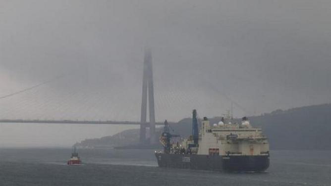Bahama Adaları Bayraklı 325 metre uzunluğunda 39 metre genişliğindeki 'Catorone' isimli derin sularda boru serim işlemi yapan gemi, 6 ay önce İstanbul Boğazı'nda geçerek Karadeniz'e açılmıştı. Karadeniz'de doğalgaz bulunan sahada boru serim işlemlerini tamamlayan dev gemi bugün saat 13.30 sıralarından Karadeniz'den İstanbul Boğazı'na girdi.
