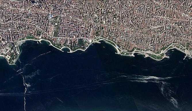 Marmara Denizi’nde görülen musilaj (deniz salyası) İstanbul Anadolu ve Avrupa yakası sahillerinde kilometrelerce yayıldı. İstanbul Anadolu yakası sahillerinde yoğun müsilaj uzaydan görüntülendi. Çekilen görüntülerde, Kadıköy sahillerinde başlayan deniz salyası Maltepe sahilleri boyunca uzadığı kimi bölgelerde ise açıklara doğu arttığı görüldü. İskelelerin büyük bir bölümü, gemiler ve teknelerin etrafının tamamen salya ile kaplandı. Müsilaj öncesi ve sonrasında çekilen görüntüler aradaki farkı net bir şekilde ortaya koyuyor.