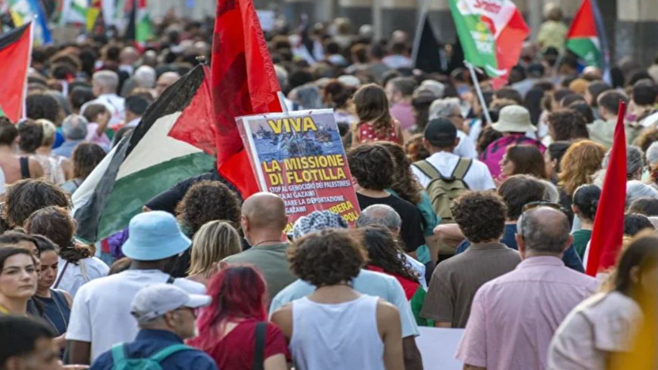 Küresel Sumud Filosu'na İtalya'dan katılacak teknelerin Sicilya Adası'nın doğusundaki buluşma noktalarından olan Katanya Limanı'nda bir araya gelen binlerce kişi, ellerindeki Filistin bayrakları ve Filistin'e, filoya destek belirten dövizlerle şehir merkezine doğru yürüdü.