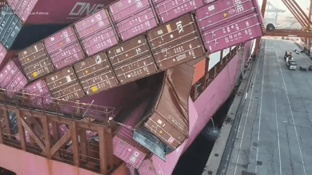 Yerel televizyon kanalı RTVC'ye göre, ONE Continuity gemisi, Gran Canaria adalar zincirinin güneyindeki Maspalomas kıyılarından geçerken dev bir dalgaya yakalandı. Geminin kıç tarafındaki istif çökmesi sonucu yaklaşık 50 konteyner (hepsi boş) kayboldu ve sığınma limanı olarak Las Palmas'a yöneldi. Herhangi bir yaralanma bildirilmedi.