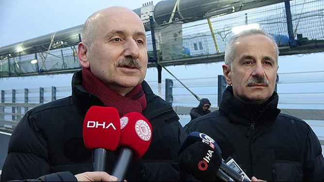 Köprünün tam ortasında basın mensuplarına açıklamada bulunan Bakan Karaismailoğlu, “Arkadaşlar bugün 17 Mart, yarın 18 Mart. Muhteşem bir gün. Çanakkale Zaferi’mizin 107’nci yıldönümü, sabırsızlıkla bekliyoruz. Hakikaten Türkiye tarihine, dünya tarihine geçecek yarın çok önemli bir açılış var. 1915 Çanakkale Köprüsü, çok heyecanlıyız. Hazırlık aşaması 10 yıl süren ve 4 yıl gibi çok kısa bir sürede bitiren dünyanın en geniş açıklıklı ve en yüksek çelik ayaklara sahip 1915 Çanakkale Köprüsü’nü yarın saat 16.00 itibarıyla hizmete açacağız. Bu açılış Sayın Cumhurbaşkanımızın teşrifleriyle olacak. Bu köprü muhteşem bir köprü, bir abide gibi adeta Çanakkale’de yükseldi. 18 Mart’ta açılması ve şehit kanlarıyla sulanmış Çanakkale’de böyle bir eserin ortaya çıkmış olması ve yüzyıllar boyu bu ülkeye hizmet edecek bu kıymetli eserin açılışı ve buraya katkıda bulunan bütün arkadaşlarımla bütün Türkiye Cumhuriyeti vatandaşlarının gurur duyacağı bir projeyi yarın hizmete açıyoruz. Köprümüz sembollerin köprüsü. 18 Mart 3’üncü ayın 18’i, 318 metrelik çelik ayak yüksekliği, 2023 metre iki çelik ayak arası açıklığıyla Cumhuriyetimizin 100’üncü yılına ithafen ve Seyit Onbaşı’nın 16 metrelik simge top mermileriyle birlikte 334 metreye kadar çıkacak çok önemli bir eseri, içinde binlerce matematik formülünü barındıran teknolojik ve mühendislik açısından aslında bir deha ürünü. Böyle kıymetli bir eseri Türkiye Cumhuriyeti’ne ve dünyaya kazandırmanın mutluluğunu yaşıyoruz. O yüzden çok sabırsızlanıyoruz. Şu anda köprünün tam ortasındayız ve gün doğumunu köprünün ortasında karşıladık. Bu köprü açıldıktan sonra köprüyle birlikte 100 kilometrelik Malkara- Çanakkale Otoyolu hem Çanakkale’ye, hem Marmara Bölgesi'ne, hem Ege Bölgesi'ne ve özellikle ülkemizin Batı kesimlerinde çok büyük değişimlere neden olacak. Bölgedeki istihdam, üretim, sanayi, teknoloji, turizmde, tarımda muhteşem gelişmeler olacak. Burası Avrupa’nın çıkış yolu, bir lojistik koridoru olarak yüzyıllar boyu bu ülkeye hizmet edecek. Bütün vatandaşlarımızı yarın gelebilecekleri Çanakkale’ye, gelemeyecekleri televizyonların başında bu muhteşem eserin açılışına bekliyoruz” şeklinde konuştu.