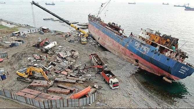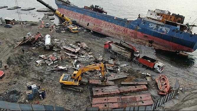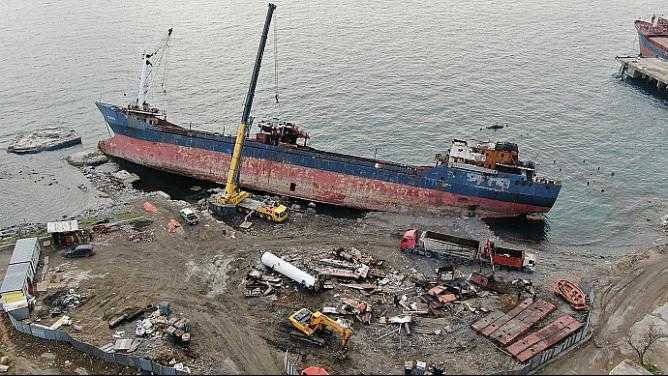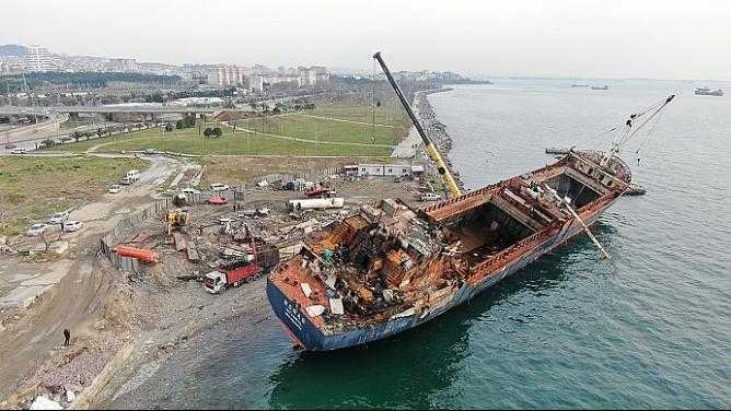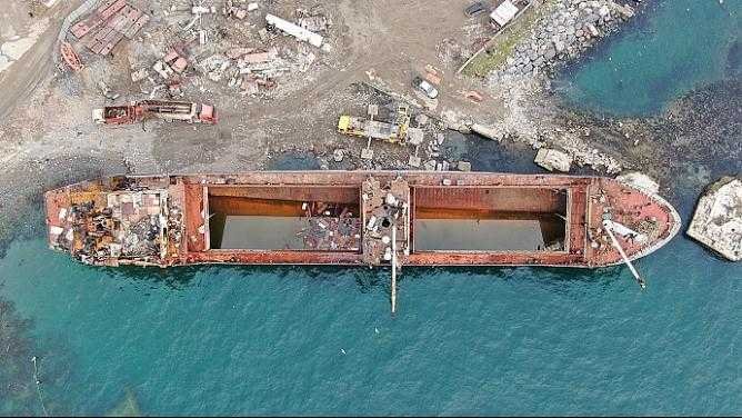 Parçalara ayrılan Boras isimli gemi drone ile havadan görüntülendi.