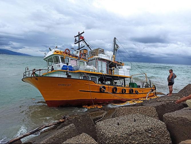 Dev dalgaların kayalıklara sürüklediği ve çarpmanın etkisiyle hasar gören balıkçı teknesi ise içine su alması sebebiyle battı. Kazanın ardından Sahil Güvenlik Komutanlığı ekipleri ile jandarma ekipleri, balıkçılara bir süre denize açılmamaları konusunda uyarıda bulundu.
