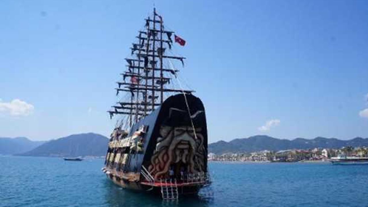 Günübirlik yolcu taşımacılığı yapan özel bir şirket tarafından Antalyaʹdan satın alınan tur gemisi, Marmaris Yat Limanıʹna yanaştırıldı. Arka kısmında Karayip Korsanları filmindeki karakter Davy Jonesʹun kabartma figürü ile kafatasları bulunan gemi, kısa sürede birçok kişinin dikkatini çekti.