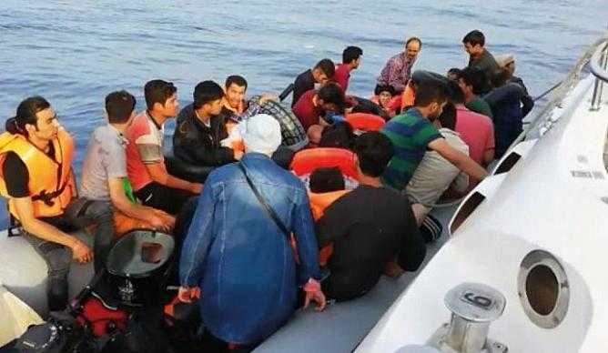 Kuşadası Körfezi’nde yasa dışı yollardan yurt dışına kaçmaya çalışan 22’çocuk, 12’si kadın toplam 54 kaçak göçmen yakalandı.