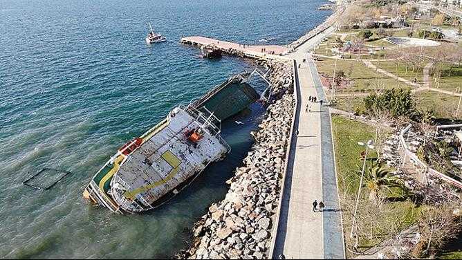 Öte yandan her gün yüzlerce insanın uğrak noktası olan Maltepe Sahil’de kimi çocukların ise gemi içerisine girerek oyun oynadığı görüldü. Vatandaşlar geminin bir an önce kaldırılmasını isterken yan yatan geminin son hali havadan görüntülendi.