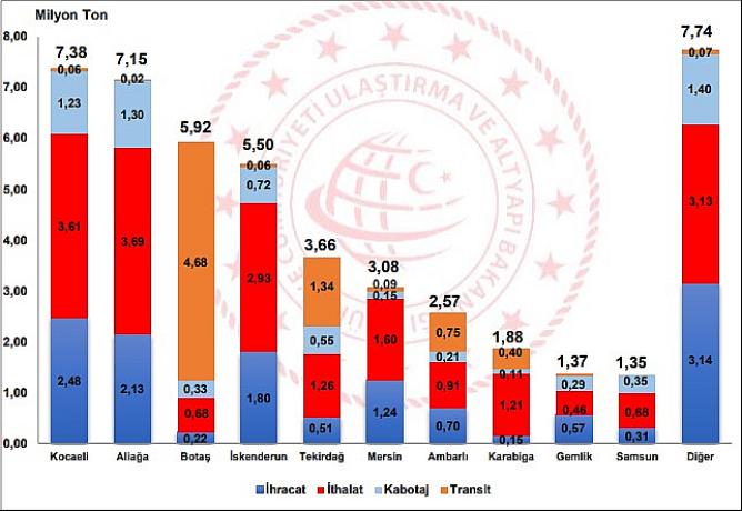 En fazla yük elleçleme Kocaeli Liman Başkanlığı idari sınırlarında gerçekleşti