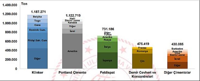 2022 yılı Mayıs ayında Klinker yük cinsi limanlarımızda elleçlenen ihracat yükleri içerisinde 1 milyon 187 bin 271 ton ile ilk sırayı aldı. Klinker yük cinsini sırasıyla, 1 milyon 122 bin 719 ton ile Portland Çimento ve 731 bin 186 ton ile Feldispat yük cinsleri takip etti.
