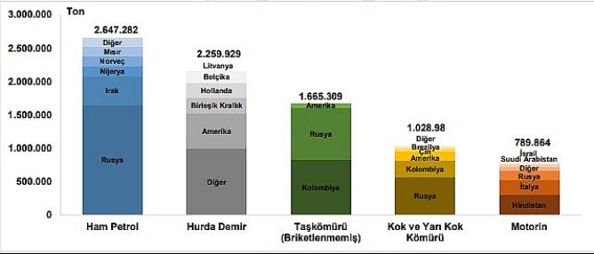 İthalatta ilk sırayı Rusya aldı